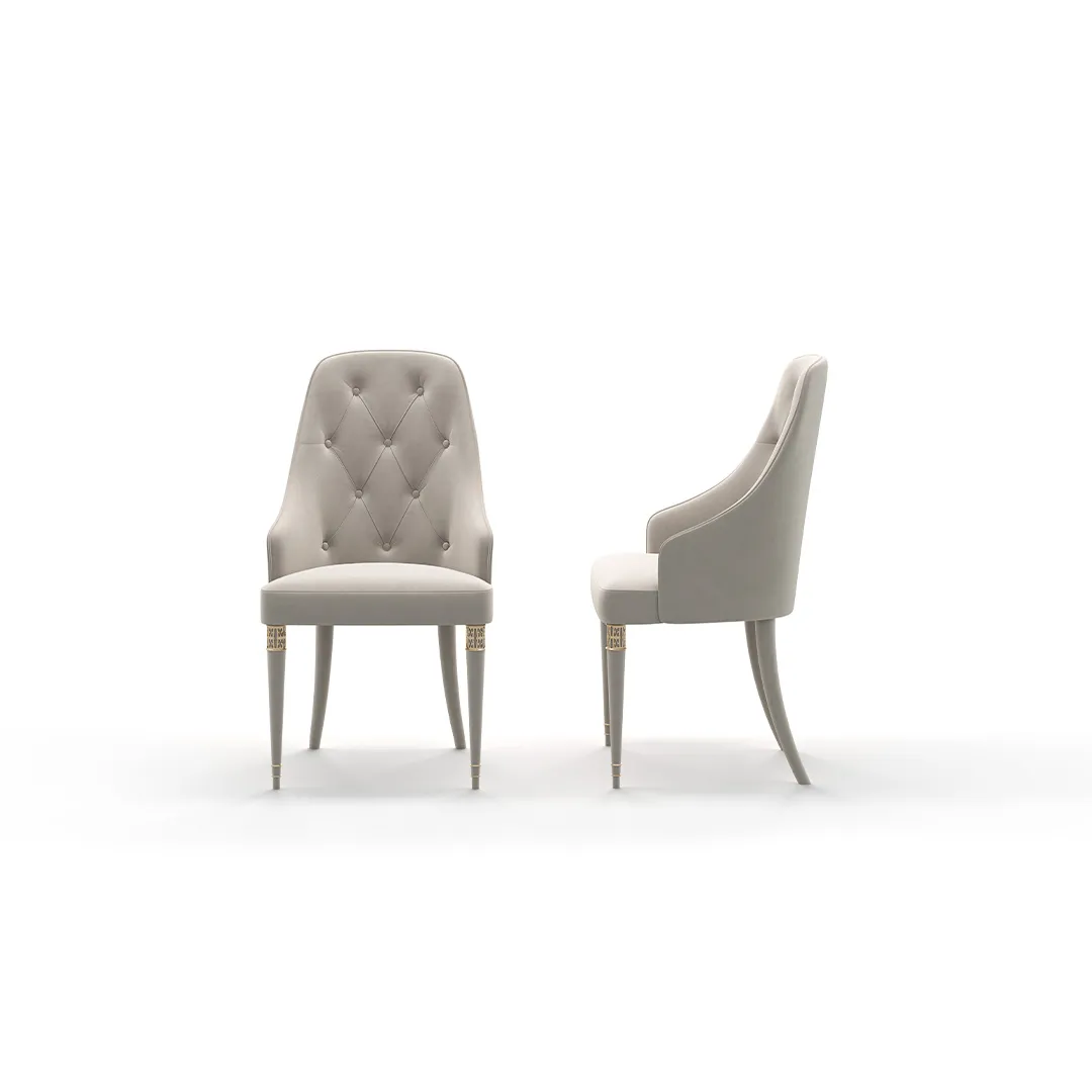 Сочетание классических традиций и безупречного мастерства, этот стул воплощает подлинную роскошь в своем совершенстве. Благородные линии силуэта подчеркиваются изысканной отделкой, где каждая деталь — произведение искусства. Особое очарование VERONA придает декорирование в технике «Капитоне»: утяжки ручной работы с тщательно закрепленными пуговицами создают рельефную гармонию, подчеркивая безупречный вкус.