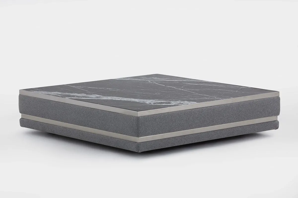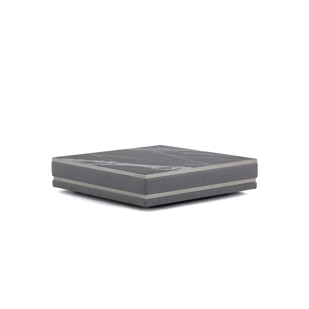 Журнальный стол АМБАССАДОР | AMBASSADOR сочетает в себе строгость натурального камня, объемное тканевое основание и металлическую окантовку. Стол станет ярким акцентом в оформлении интерьерного пространства.
