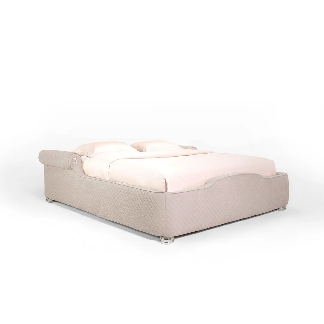 Кровать PALLADIUM выполнена в стилистике Ар-деко. Волнообразный изгиб спинки несет в себе черты модернизма, передают его характер в отказе от прямых линий и углов в пользу более естественных, природных линий. Эффектные подлокотники, создающие гармонию в сочетании плавности форм и геометрического рисунка, демонстрируют сложность и оригинальность изделия. Кровать PALLADIUM выделяется изысканным дизайном и яркими деталями: по каркасу изделие украшено объемной стежкой, инкрустировано золотыми или серебряными логотипами ESTETICA VISION в подлокотниках, а также декоративными эффектными ножками с брендовой надписью.