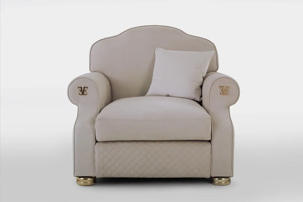 Коллекция мягкой мебели PALLADIUM создана в стиле Ар-деко и отражает в себе изысканную роскошь и достаток. Каркас кресла PALLADIUM украшен объемной стежкой Channel с инкрустацией логотипа ESTETICA VISION в подлокотники. Дополнение дизайнерского ансамбля - декоративные ножки с брендовой надписью. Безупречный комфорт кресла PALLADIUM обеспечен большой глубиной посадки. Объемная подушка сиденья изготовлена из пенополиуретан повышенного комфорта в основе и высокосиликонизированного искусственного аналога лебяжьего пуха. Многослойность подушки сиденья подарит Вам перинную мягкость с эффектом медленного погружения. Эргономичность округлых подлокотников и высокая спинка обеспечат приятный отдых и расслабление.