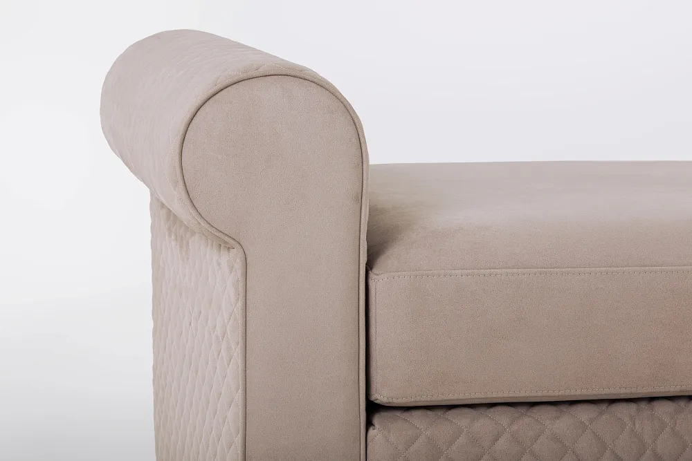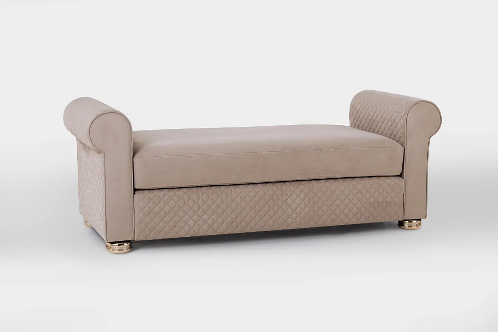 Основные функции банкетки – создание атмосферы уюта в доме и практичность. Банкетка PALLADIUM напоминает миниатюрный диванчик с подлокотниками и валиками. Такой предмет интерьера вносит в дом атмосферу спокойствия и стабильности. Банкетка PALLADIUM является продолжением спальной коллекции ESTETICA VISION и становится завершающим элементом в создании дизайна интерьера. Изделие имеет мягкую съемную цельную подушку, которая обита тканью. В наполнении используется искусственный латекс. Под подушкой сиденья, в основании банкетки, находится независимый пружинный блок, который придает особый комфорт и мягкость посадки. Внутренний каркас банкетки выполнен из натуральной древесины — массива сосны и березовой фанеры.