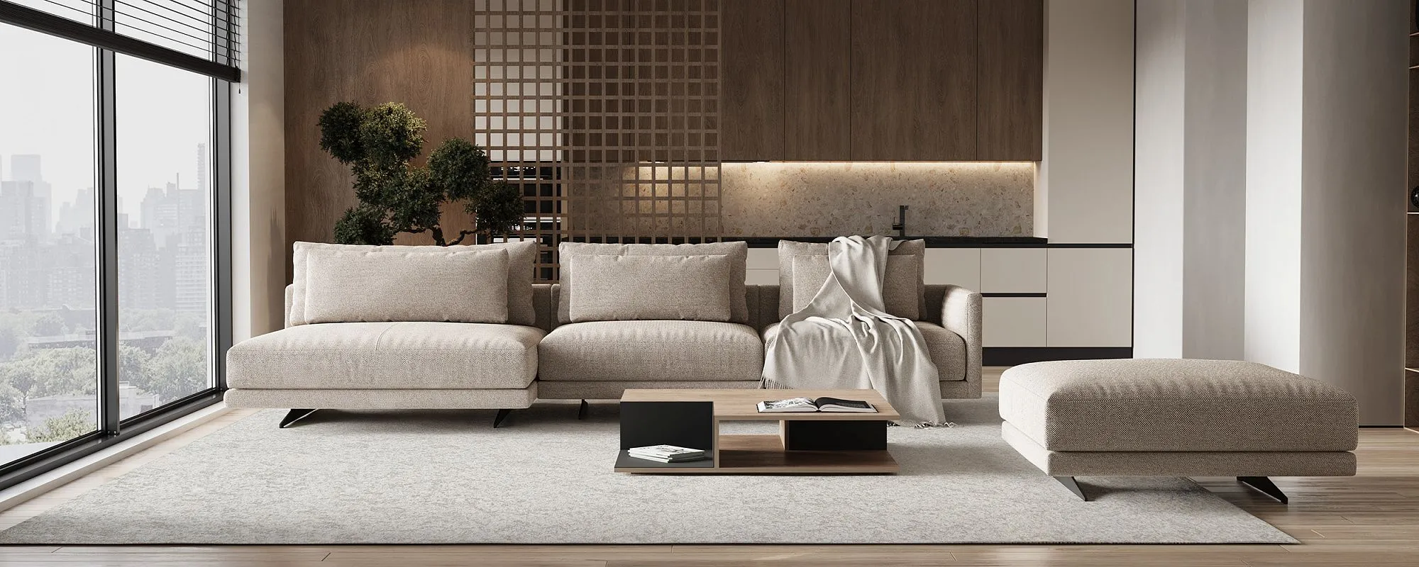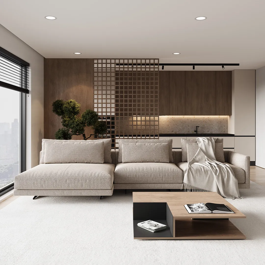 Лёгкость и воздушность дивана BRIAN достигаются за счёт тонких линий каркаса, переходящих в подлокотники и потайных опор, которые придают ему эффект парения. Мягкие и утопающие подушки сидения подарят невероятный уют своему обладателю, а идеальная высота спинки и подлокотников поможет с комфортом расположиться на нем. Трендовым элементом декора является приставная декоративная полка из шпона натурального дуба. Данный элемент отражает эстетику хранения и может использоваться как отдельно стоящий предмет интерьера.