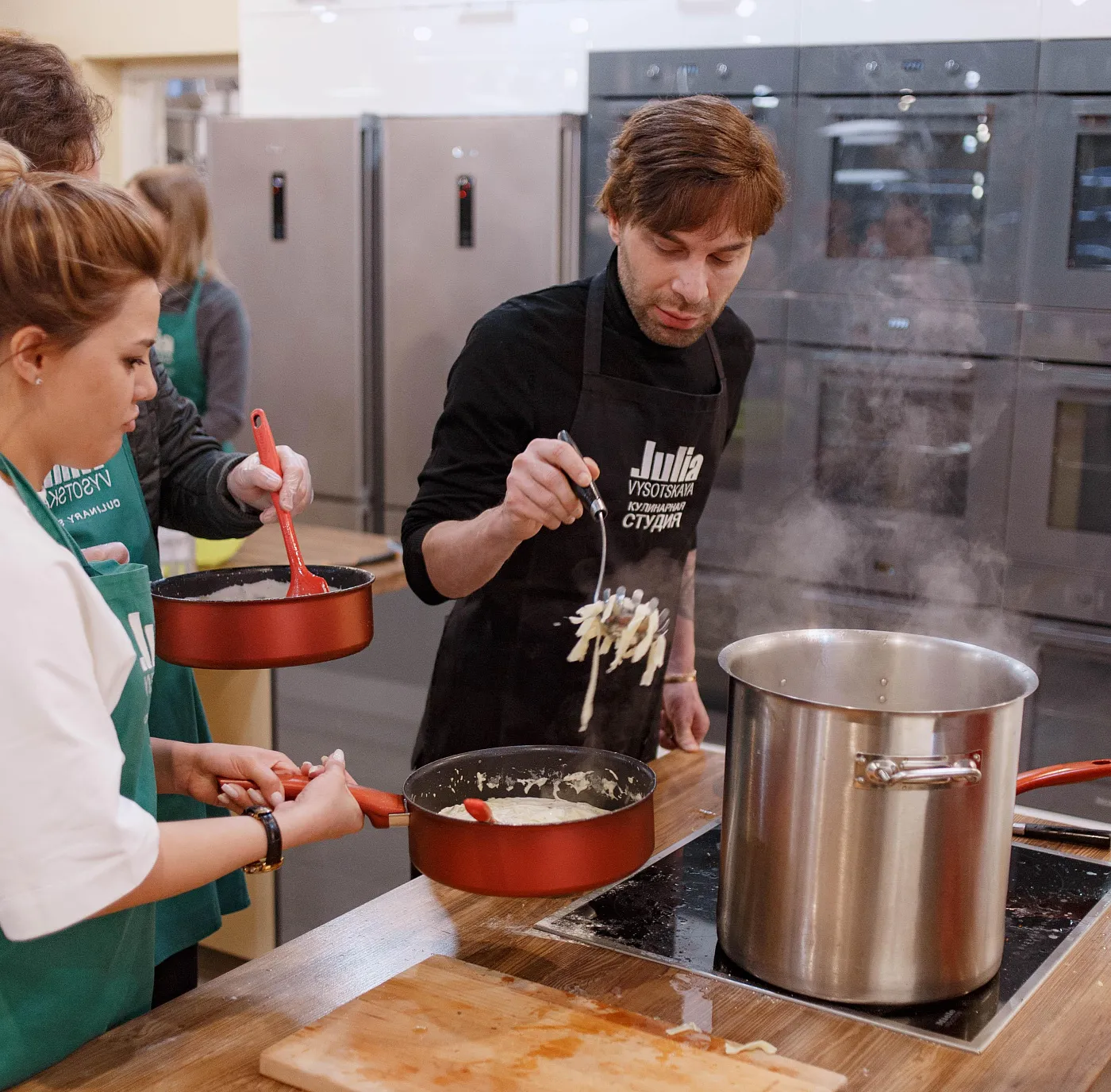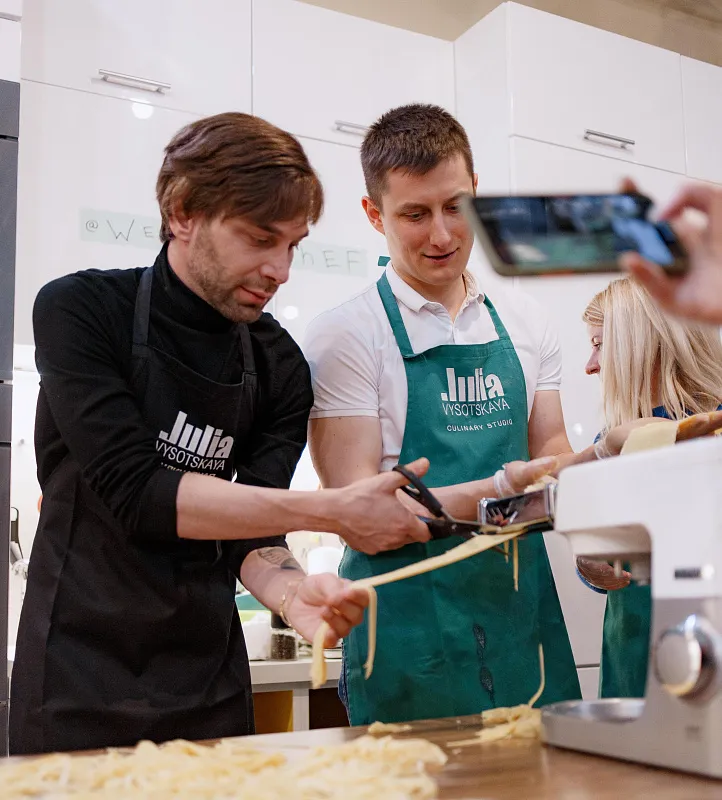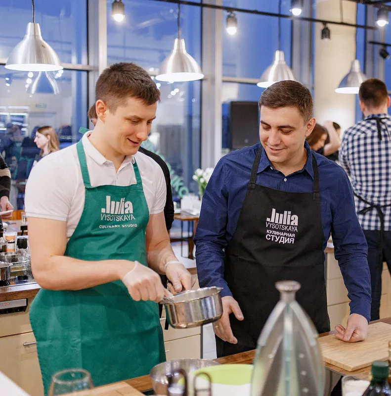 Мужчины — наши защитники и опора во всем! Теперь и кулинарное мастерство входит в число их достоинств. Мастер-класс с шеф- поваром — это не только вкусно и полезно, но и очень весело, в течении нескольких часов мы познавали азы высокой кухни , отдыхали от повседневных забот, интересно и познавательно провели время в студии Юлии Высоцкой за приготовлением мясных и рыбных стейков.
