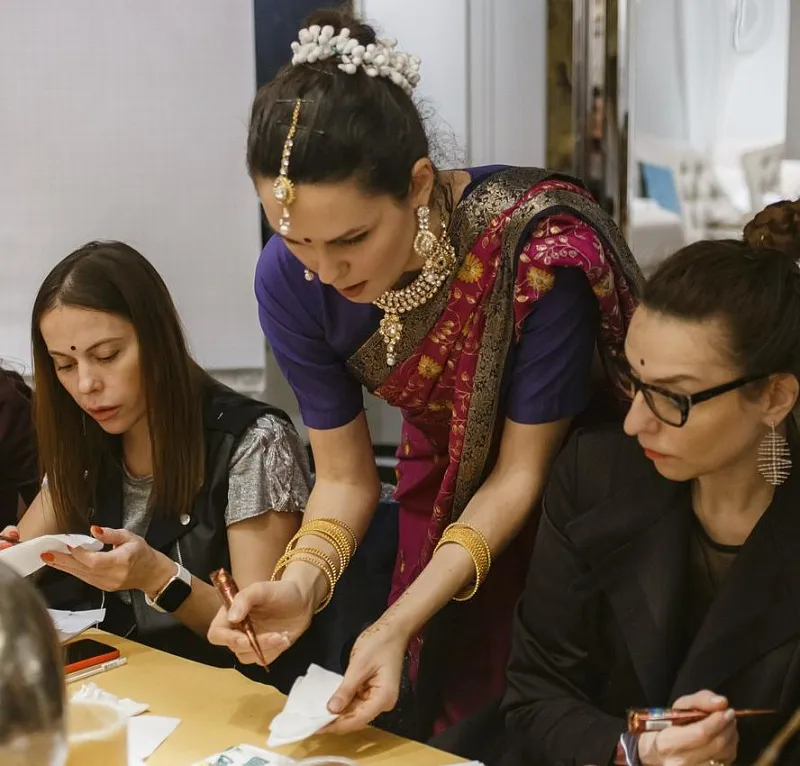 12 марта в салоне ESTETICA VISION Экспострой состоялась встреча дизайнеров, приуроченная к женскому празднику 8 марта. На этот раз мы решили вдохновиться древним искусством нательной росписи - Менди (хинди मेहँदी, урду مہندی), или как еще называют "Мехенди". Посвящение в таинство прошло традиционно: отступление к истории и основным свойствам хны, символизм, приобщение к традициям и обрядам Менди различных народов мира. Далее гостей ожидала самая приятная практическая часть встречи - обучение росписи, в процессе которой гости практиковали базовые и сложные этнические элементы : цветок, огурец, листья, ростки. По обычаю, никто из гостей не покинул салон без подарков.