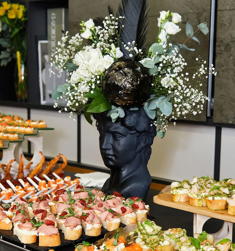 Традиционно, в этот вечер мы встречали гостей живой музыкой, изысканными угощениями и цветочными композициями. Всех посетителей ждали приятные сюрпризы: памятные фирменные подушки из кожи с символикой бренда, розыгрыши с ценными призами.