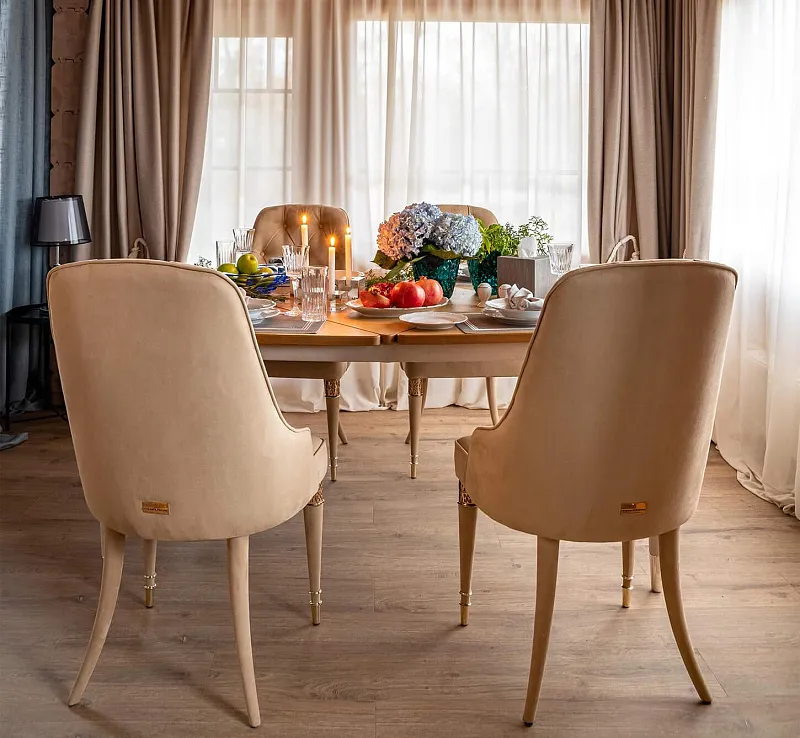 Мария очень любит фактуру дерева и хотела поддержать интерьер в том же стиле. "Столовая и гостиная с буржуйкой, что еще надо семье!"-воскликнула Наталья, когда увидела дом впервые. "Нам хотелось бы, чтобы было комфортно, уютно, тепло. И при этом, не так много было всего- всего. Какой-то минимализм, какая-то простота и уют" - вторил супруге Алексей. Дом в стиле минимализм, переходящий в скандинавский стиль- именно такую задумку его жителей реализовала дизайнер Таисия Заботина, наш друг и партнер @taisia.architect. Кресло Марсель в благородном графитовом цвете с аккуратным контрастным белым кантом. Велюровая ткань подчеркивает статус благодаря роскошной фактуре и непревзойдённым тактильным свойствам. Контрастный белый кант подчеркивает простую, а в то же время необычную геометрию изделия , а так же является связующим цветовым звеном с обеденной группой и другой мебелью. Обеденный стол Лофт из массива дерева украшен интересными дизайнерскими приемами: семь ромбовидных элементов вместо цельной столешницы демонстрируют изысканный вкус владельца. Эксклюзивные ювелирные элементы, такие как: декоративные кольца и наконечники для ножек стульев выполнены из сплава алюминия. Лаконичный дизайн, геометрические линии прекрасно вписываются в скандинавский стиль. Стул Верона – это гармония роскошного внешнего вида и функциональности. Декоративная особенность изделия- утяжки «Капитоне» по внутренней части спинки. Это кропотливый процесс ручной работы, где каждая пуговица отдельно зафиксирована внутри каркаса, выполненного из массива дуба, ножки стула выполнены из древесины бука, наиболее прочного дерева, и устойчивы к максимальным нагрузкам. Как вишенка на торте- аксессуары в виде браслетов и металлические наконечники, выполненные в технике ювелирного литья. Благодарим @iremont.tv за прекрасные проекты и возможность участия.
